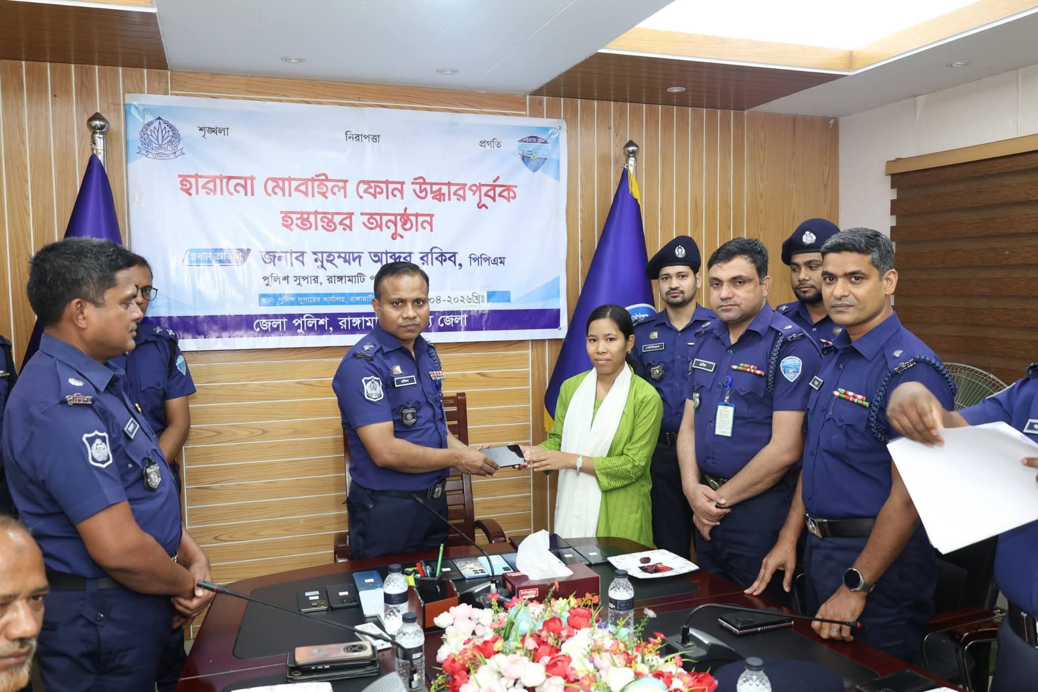 বৃহস্পতিবার (০২ এপ্রিল) সকালে রাঙ্গামাটি পুলিশ সুপারের কার্যালয়ের সম্মেলন কক্ষে আয়োজিত এক অনুষ্ঠানে আনুষ্ঠানিকভাবে এসব মোবাইল ফোন হস্তান্তর করা হয়। অনুষ্ঠানে সভাপতিত্ব করেন রাঙ্গামাটি পার্বত্য জেলার পুলিশ সুপার মুহম্মদ আব্দুর রকিব, পিপিএম।