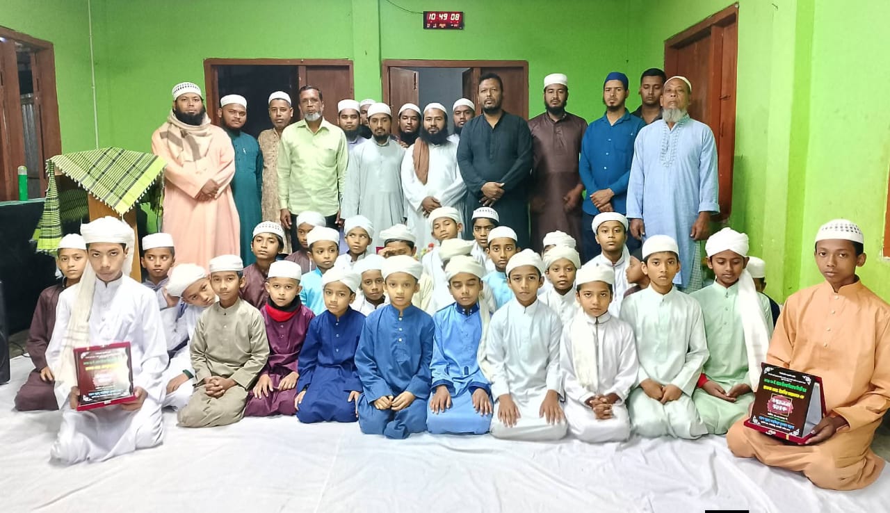 শেষে বিদায়ী তিন হাফেজ ছাত্রের হাতে সম্মাননা স্মারক তুলে দেওয়া হয় এবং তাদের উজ্জ্বল ভবিষ্যৎ কামনায় দোয়া করা হয়।