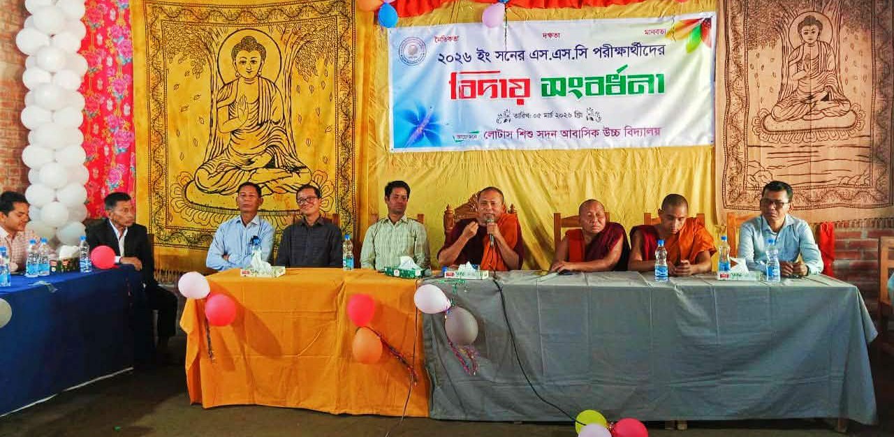 রাঙ্গামাটির কাপ্তাই উপজেলার কুকিমারা এলাকায় অবস্থিত দুর্গম পাহাড়ের শিক্ষার আলো ছড়ানো প্রতিষ্ঠান ‘লোটাস শিশু সদন উচ্চ বিদ্যালয়’-এর ২০২৬ সালের এসএসসি পরীক্ষার্থীদের বিদায় সংবর্ধনা সম্পন্ন হয়েছে। বৃহস্পতিবার (৫ মার্চ) সকালে বিদ্যালয় হলরুমে ধর্মীয় বন্দনা পাঠের মধ্য দিয়ে অনুষ্ঠানের সূচনা হয়।